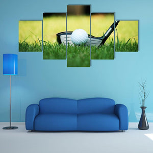 Golf Club and Ball Close-up with Dewdrops Canvas Wall Art