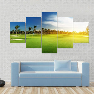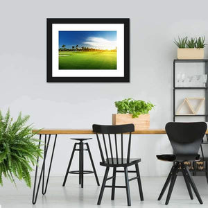 This canvas art captures a vibrant golf course in the Dominican Republic, featuring lush green grass, towering palm trees, and a bright blue sky. The serene tropical scene invites relaxation and an appreciation for nature.