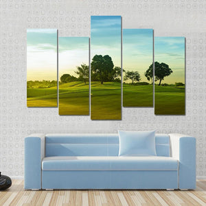 This realistic landscape captures the serene beauty of a golf course in the Philippines, featuring lush green trees under a bright blue sky. The artwork radiates a peaceful vibe, making it a lovely addition to any room decor.