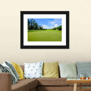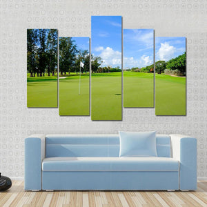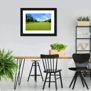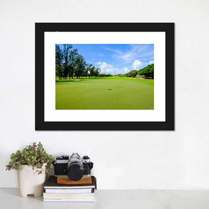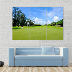 Capture the serene beauty of an Australian golf course with this stunning canvas print. Featuring lush green grass, a bright blue sky, and a cheerful white flag, it adds a touch of tranquility to your space.
