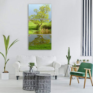 Golf Course Pond Reflection Vertical Canvas Wall Art