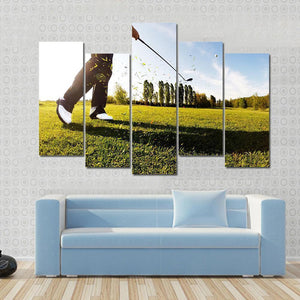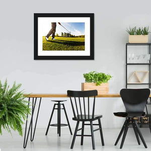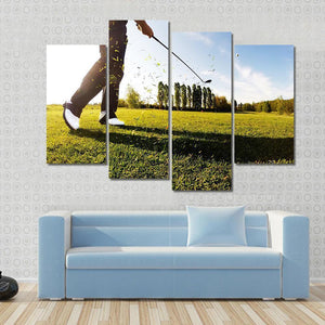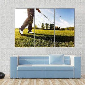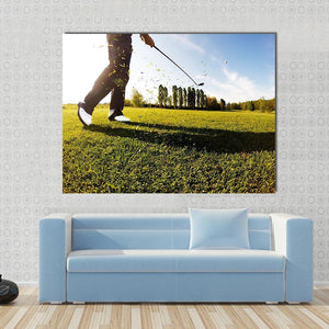 This dynamic canvas art captures a golf shot in action, showcasing a low-angle perspective with a bright and energetic vibe. The vibrant palette of greens, blues, and whites brings a fresh summer feel to your space.