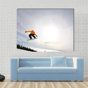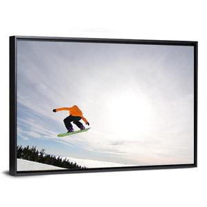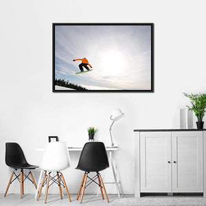 Capture the thrill of snowboarding with this dynamic canvas art. Featuring a snowboarder mid-air against a backdrop of mountains and a bright sky, it evokes feelings of action and freedom. Perfect for adding a vibrant touch to your space.