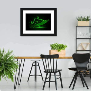 This vibrant canvas captures the energy of a hockey player in a dynamic action shot, outlined in glowing neon green against a striking black background. Perfect for sports enthusiasts, it adds a modern touch to any wall.