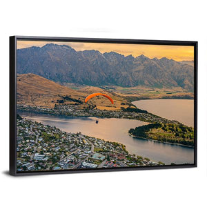 This breathtaking canvas captures the thrill of paragliding over Queenstown and Lake Wakaitipu. With an aerial view showcasing vibrant orange and blue hues against the serene backdrop of mountains and water, it evokes an adventurous yet calming atmosphere, making it a striking addition to any space.