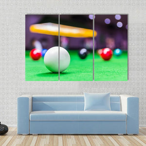 This striking canvas art captures a focused moment on a snooker table, featuring a white ball poised for action. The calm colors, including rich greens and pops of yellow, create a modern and photorealistic feel, perfect for any game room or sports enthusiast's decor.