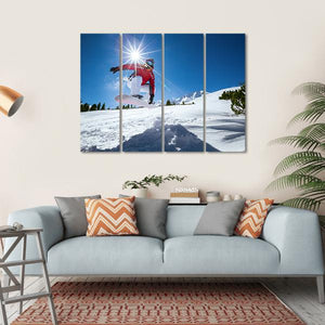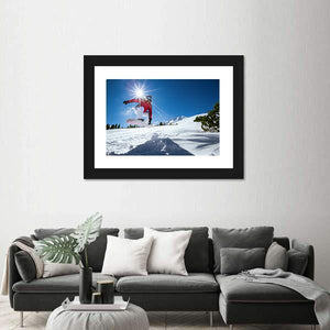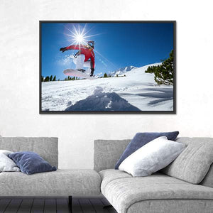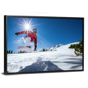 Capture the thrill of winter sports with this dynamic canvas art featuring a snowboarder soaring through fresh snow, against a backdrop of snowy mountains. The bright palette and action-oriented composition create an exciting atmosphere, perfect for energizing your space.