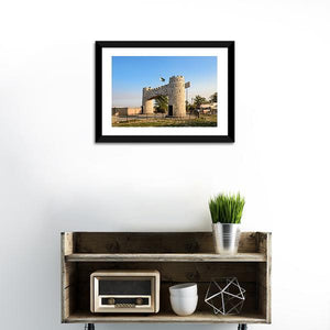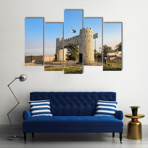 This canvas wall art features the iconic Bab-E-Khyber, capturing a clear day with its impressive stone gate and archway. With a realistic style, the piece showcases a blend of tan, blue, green, and white hues, evoking a historical atmosphere perfect for any space.