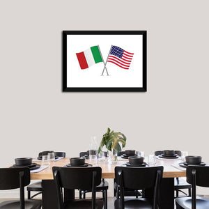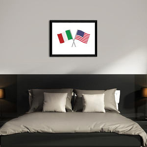 This canvas features overlapping American and Italian flags in a symmetrical, modern composition. Bold red, white, green and blue tones give the piece a patriotic, symbolic feel and make it a good fit for contemporary living rooms, home offices, or modern spaces.