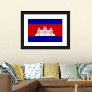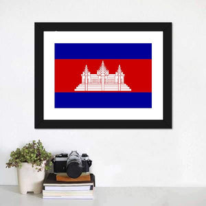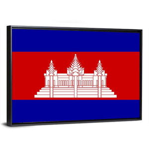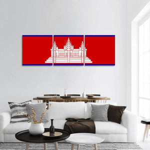 Featuring the Cambodia flag with a stylized white outline of Angkor Wat, this panoramic canvas offers a grand, symbolic presence with a symmetrical, minimalist graphic design. Its bold red, blue and white palette suits modern or minimalist rooms and contemporary wall decor.