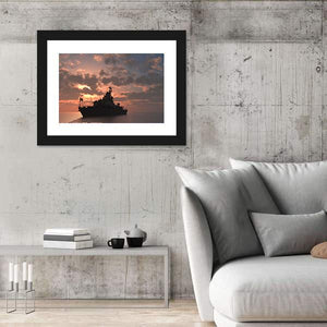 Military Ship In Sea Panoramic Canvas Wall Art