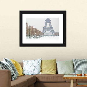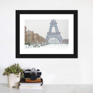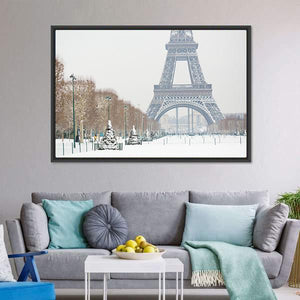 This canvas art captures the iconic Eiffel Tower amidst a serene, snowy park. With its peaceful gray and white palette, it's perfect for adding a winter charm to your space.