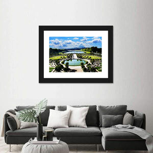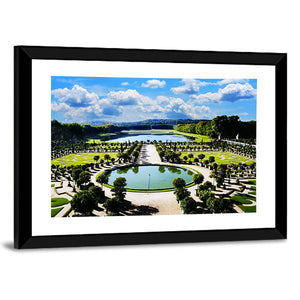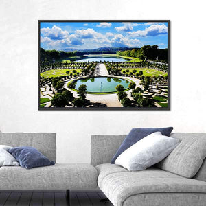 This canvas artwork captures the serene beauty of the Versailles gardens, featuring elegant fountains, lush trees, and tranquil ponds. The piece evokes a grand and peaceful atmosphere, making it an ideal addition to formal or classical decor.