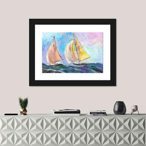 Two Sailboats on Blue Sea Canvas Wall Art