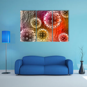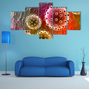 Virus Canvas Wall Art presents viruses and cells at a microscopic scale with a scientific, modern feel. The abstract composition emphasizes depth and detailed exterior textures, using red, yellow, pink, purple and grey for a colorful, contemplative atmosphere. Works well in modern homes, study areas, or science-themed rooms.