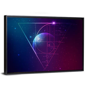 Explore the wonders of the cosmos with this abstract canvas art featuring geometric shapes, planets, and galaxies. Its captivating blue, purple, and pink palette evokes a mysterious, mathematical atmosphere, making it a striking addition to any modern décor.
