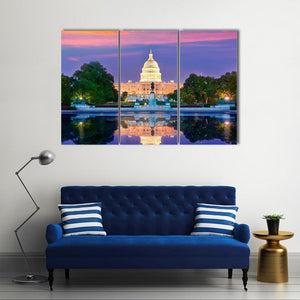 Us Capitol Reflection at Sunset, Washington Dc Canvas Wall Art