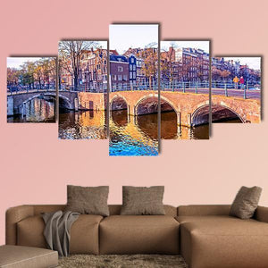 Amsterdam Canal Houses and Bridges Canvas Wall Art