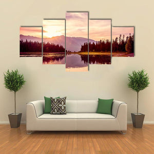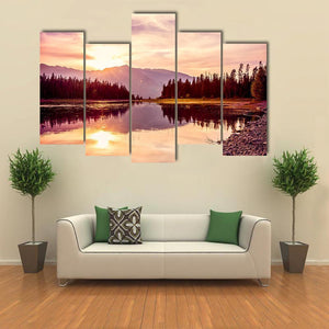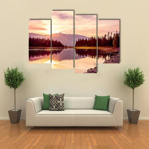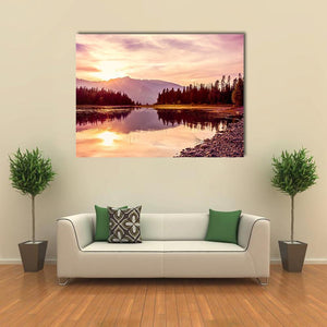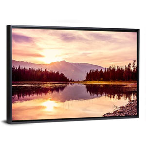This canvas art captures the serene beauty of Grand Teton and Jackson Lake at sunset, featuring vibrant reflections and lush mountains. Its modern landscape style brings a peaceful atmosphere to any room.