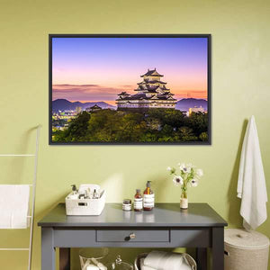 Capture the essence of Japan with this serene canvas art featuring Himeji Castle. Displaying rich shades of purple and orange against a twilight sky, it evokes a sense of peace and history while showcasing the castle’s tiered roofs and multiple towers.