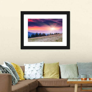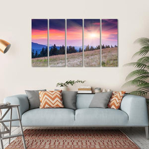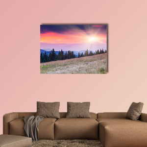 This canvas wall art captures a serene landscape of majestic mountains bathed in warm sun rays. The vibrant palette of pink, purple, and orange creates a hopeful and uplifting atmosphere, making it a lovely addition to any nature-inspired décor.