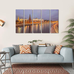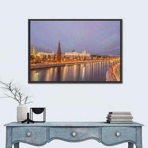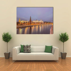 This canvas wall art beautifully captures the serene Moscow skyline at sunrise. Featuring stunning reflections on the river and illuminated architecture, it creates a calm, evening atmosphere perfect for any space.