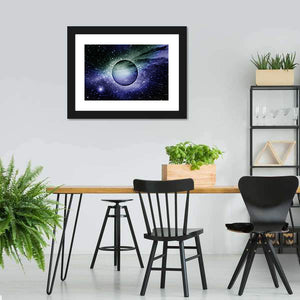 This canvas art features a mesmerizing nebula with a glowing planet set against a starfield background. The cosmic colors of purple, blue, and green create a vast and mysterious atmosphere, perfect for bringing a touch of modern sci-fi charm to any space.