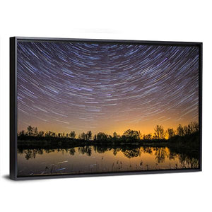 Star Trails Over Lake with Reflection Canvas Wall Art