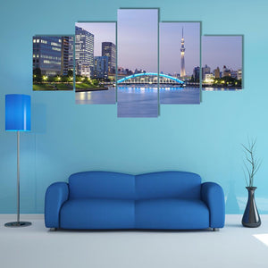 Tokyo Evening Skyline with Illuminated Bridge Canvas Wall Art