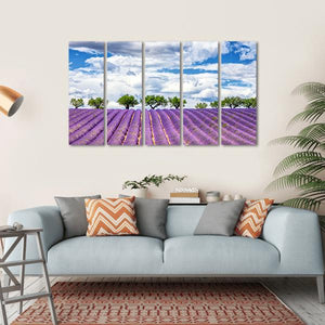 This canvas art features a tranquil lavender field in France, adorned with fluffy clouds and vibrant purple hues. Its serene vibe enhances any room, inviting a sense of peace and appreciation for nature's beauty.