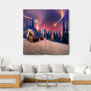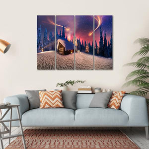 This enchanting canvas features a snowy cabin nestled in a serene winter forest under a magical night sky. With a captivating aurora lighting up the scene, it's perfect for bringing peace and tranquility to any space.