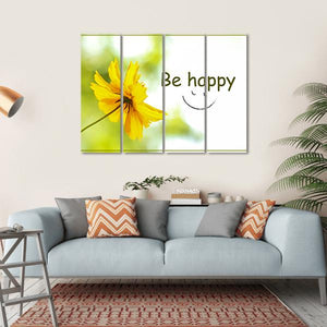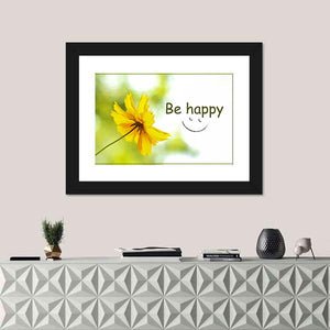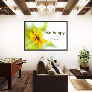 Brighten your space with this uplifting wall art featuring a cheerful yellow flower and the inspiring phrase 'Be Happy.' Its modern, minimalist style makes it a perfect fit for any room looking to add a touch of joy.
