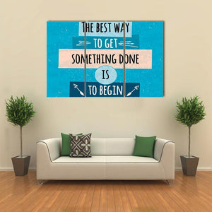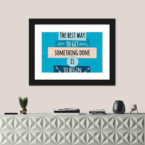This canvas wall art features an inspirational quote, combining a modern minimalist design with a centered composition. The calming palette of blue, pink, white, and black creates a motivational atmosphere, perfect for uplifting your space.