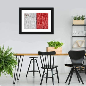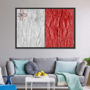 Flag of Malta Canvas Wall Art shows a symmetric, close-up depiction of the Maltese flag with textured graphic detail and the George Cross visible. Its red, white and gold palette gives a historic, patriotic mood that fits a modern home or office. The bold, graphic print works well with contemporary or heritage-inspired room decor.