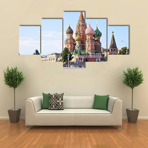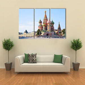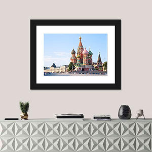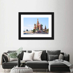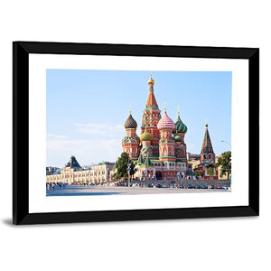 This captivating canvas art features the iconic Saint Basil’s Cathedral set against a clear blue sky. Its vibrant colors in red, green, and gold evoke the historic beauty of Moscow, making it a striking addition to your wall decor.