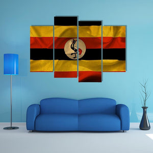 Uganda Waving Flag Canvas Wall Art features the Uganda flag with black, yellow and red horizontal stripes and the grey crowned crane centered in the design. Its graphic, clean look adds a patriotic, bold touch suited to modern homes, entryways, or living rooms.
