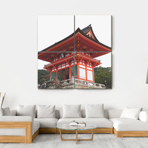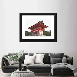 This canvas art beautifully captures a Japanese pagoda near Kiyomizu Temple, showcasing its distinct tiered roof structure and white paneled walls. The vibrant palette of red, green, and brown conveys a rich cultural ambiance, making it a thoughtful addition to your wall decor.