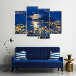 This canvas features a vibrant city skyline with Sugarloaf Mountain under a serene night sky. The aerial view captures twinkling city lights and boats in the bay, perfect for adding a lively touch to your decor.