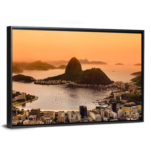 This striking canvas art captures the tranquil beauty of Sugarloaf Mountain and Botafogo Beach at sunset. With a warm palette of orange and blue tones, it evokes a serene atmosphere, perfect for adding a picturesque touch to your wall decor.