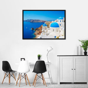 Blue Ocean & Dome Santorini Canvas Wall Art