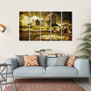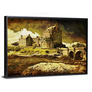 This captivating canvas print features a historic castle set against a dramatic stormy sky. The rustic, vintage style captures the essence of Scotland, with earthy tones and striking textures that bring the scene to life.