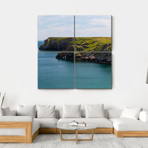 Capture the serene beauty of the Welsh coastline with this captivating canvas wall art. Featuring coastal cliffs and lush green hills under light clouds, it evokes a natural and peaceful atmosphere that's perfect for any space.
