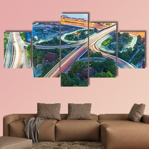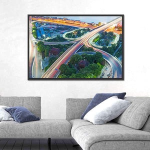 Shanghai Interchange Overpass at Night Canvas Wall Art