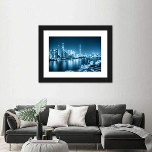 Capture the vibrant life of Shanghai with this stunning canvas wall art. Featuring the iconic skyline, river, and modern architecture illuminated by artificial lights, it creates a sophisticated atmosphere perfect for any space.