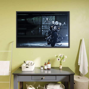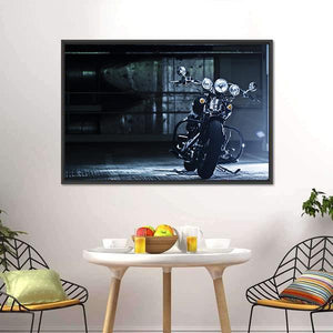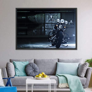This striking canvas features a powerful motorcycle set in a moody garage environment. With its industrial and vintage style, it brings a cool, edgy vibe to any room.