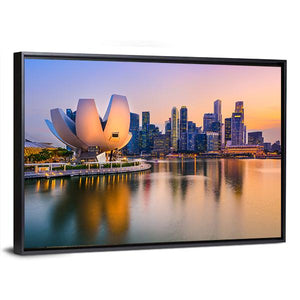 This captivating canvas features the Singapore skyline at twilight, highlighting the stunning Marina Bay Sands. The vibrant palette of blue, orange, pink, and purple creates a serene, urban atmosphere, making it a striking addition to your wall decor.