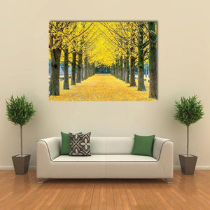 Row Of Yellow Ginkgo Tree In Nami Island Canvas Wall Art