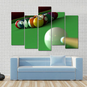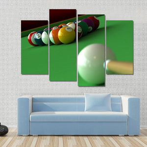 This canvas art features a close-up of vibrant pool balls and a cue stick poised to strike. The focused and anticipatory mood makes it a captivating addition to any sports-themed space or game room.