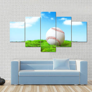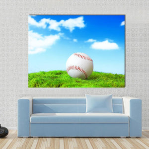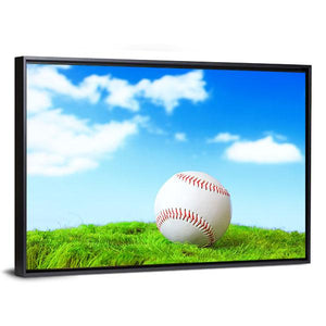 This photorealistic canvas art features a baseball resting in lush green grass under a sunny sky with fluffy white clouds. Its peaceful and natural vibe makes it a lovely addition to any sports-themed décor.