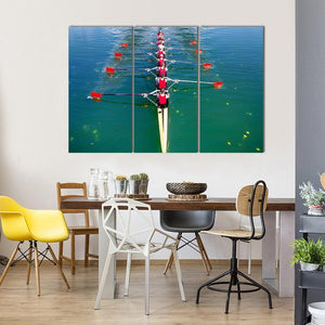 Eight Rowers Competing on Blue Water Canvas Wall Art